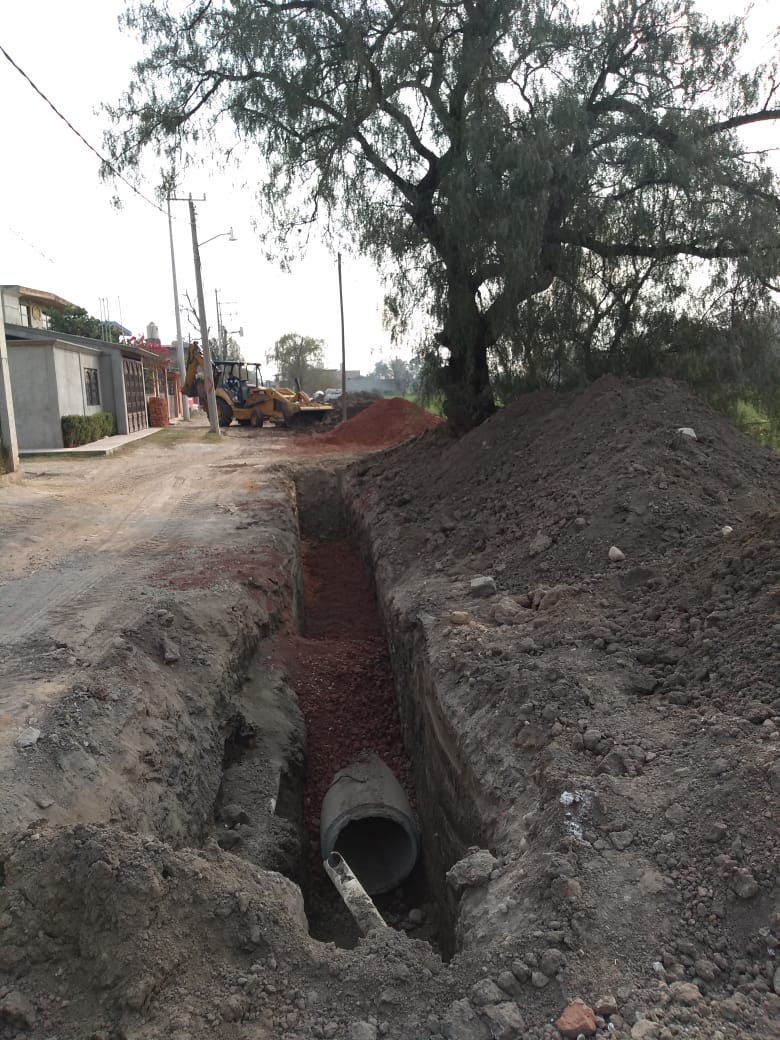 Las obras consisten en trazo y nivelación de líneas de agua y drenaje, excavación de hasta 1.5 metros de profundidad, colocación de tubo de concreto de 38 centímetros de diámetro, hasta alcanzar los 789 metros lineales.