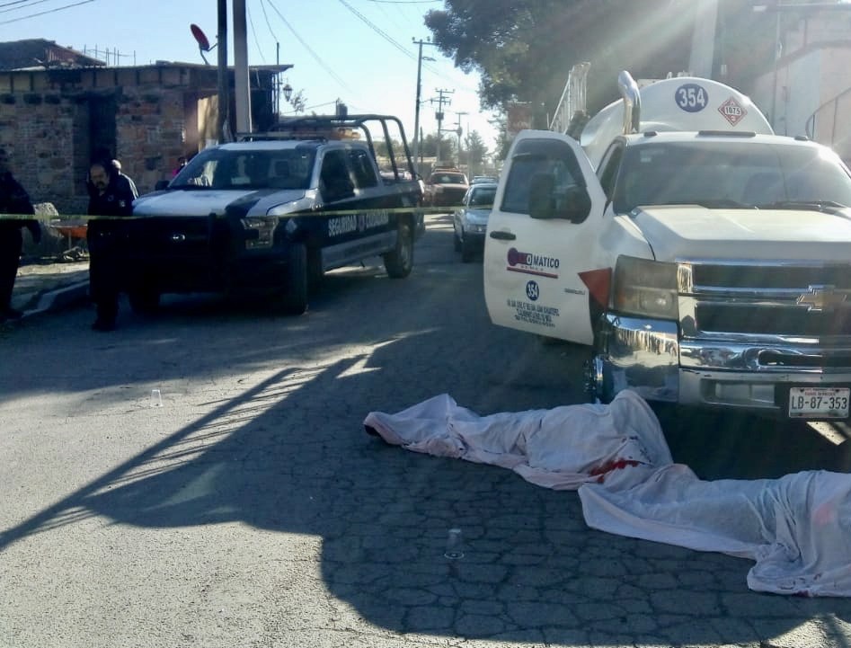 De acuerdo con los primeros reportes, las víctimas se encontraban a un costado de pipa de gas, razón social Gasomático, matrícula LB-87-353, cuando un sujeto armado les disparó a quemarropa.